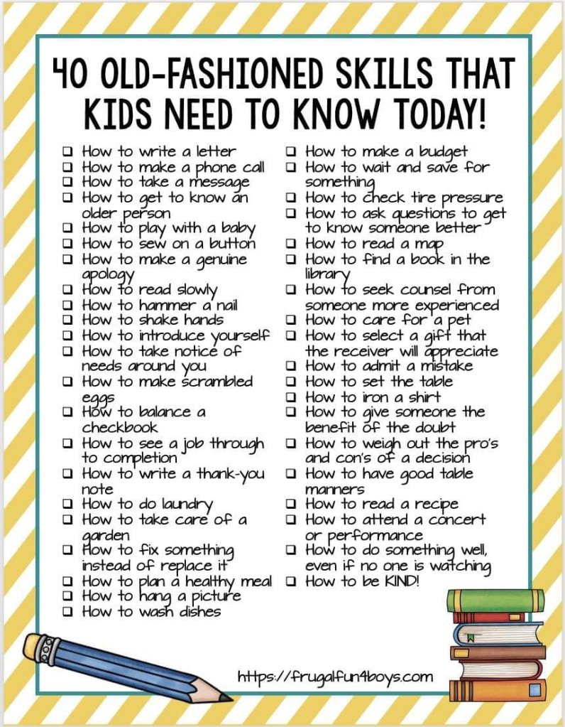 Home schooling can be an opportunity to brush up, catch up, or reintroduce some important life skills for your kids. Then hopefully after this health crisis is over we will have some young people in our lives who are better equipped to deal with the craziness of the 21st century.